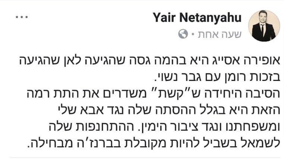 יאיר נתניהו בפייסבוק התסכול בימין מוצדק אבל אסור להמליך ממשלת שמאל 0404